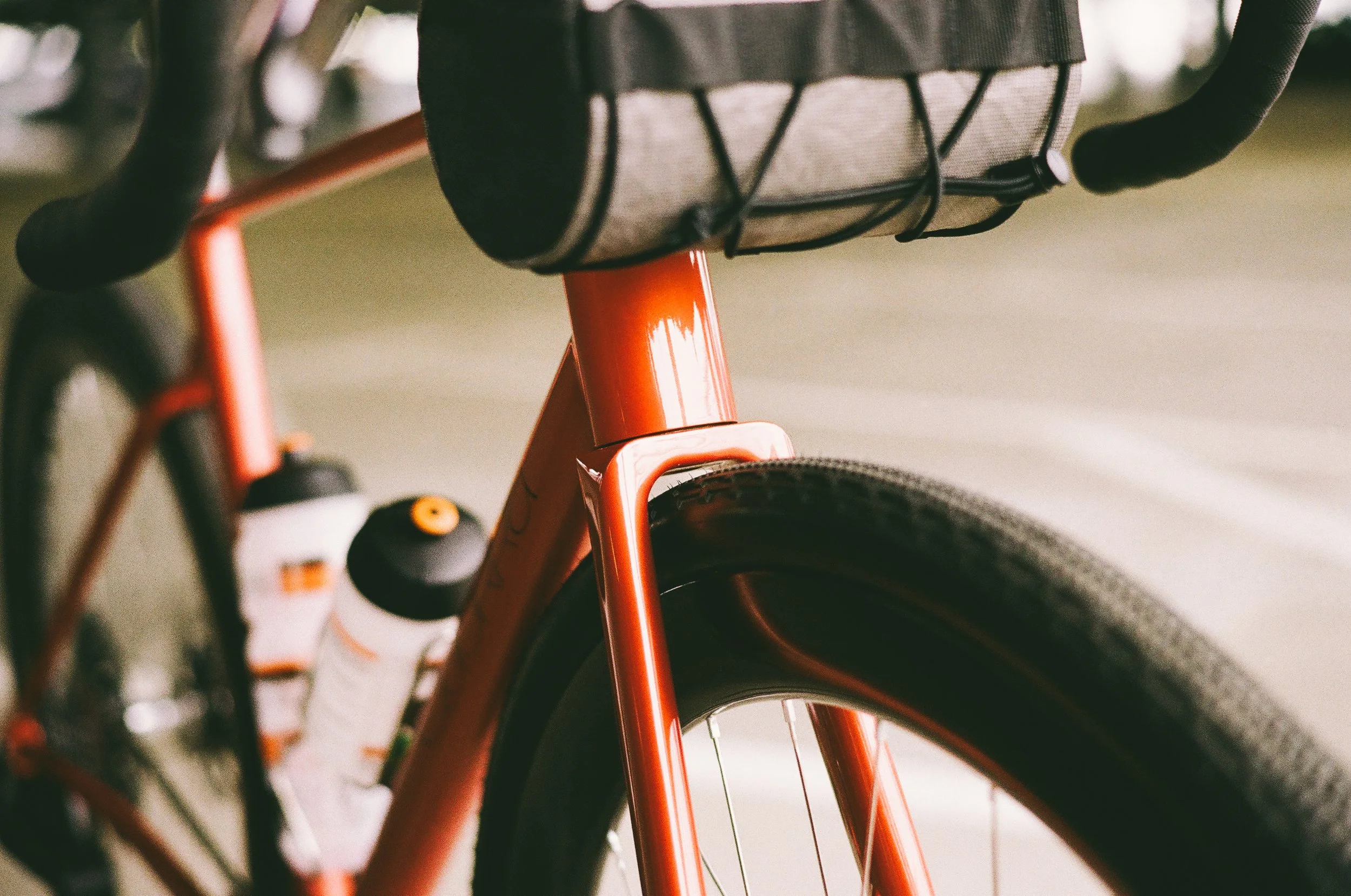 It sounds almost absurd to say it out loud, but 40mm doesn’t even feel like gravel anymore. As Kang explained to me, the beauty of a fully custom frame and fork is that a few millimeters here and there can always be added. Tire clearance is never fixed as it evolves with the idea. And that brings us directly to one of the most striking elements of this bike: the fork.