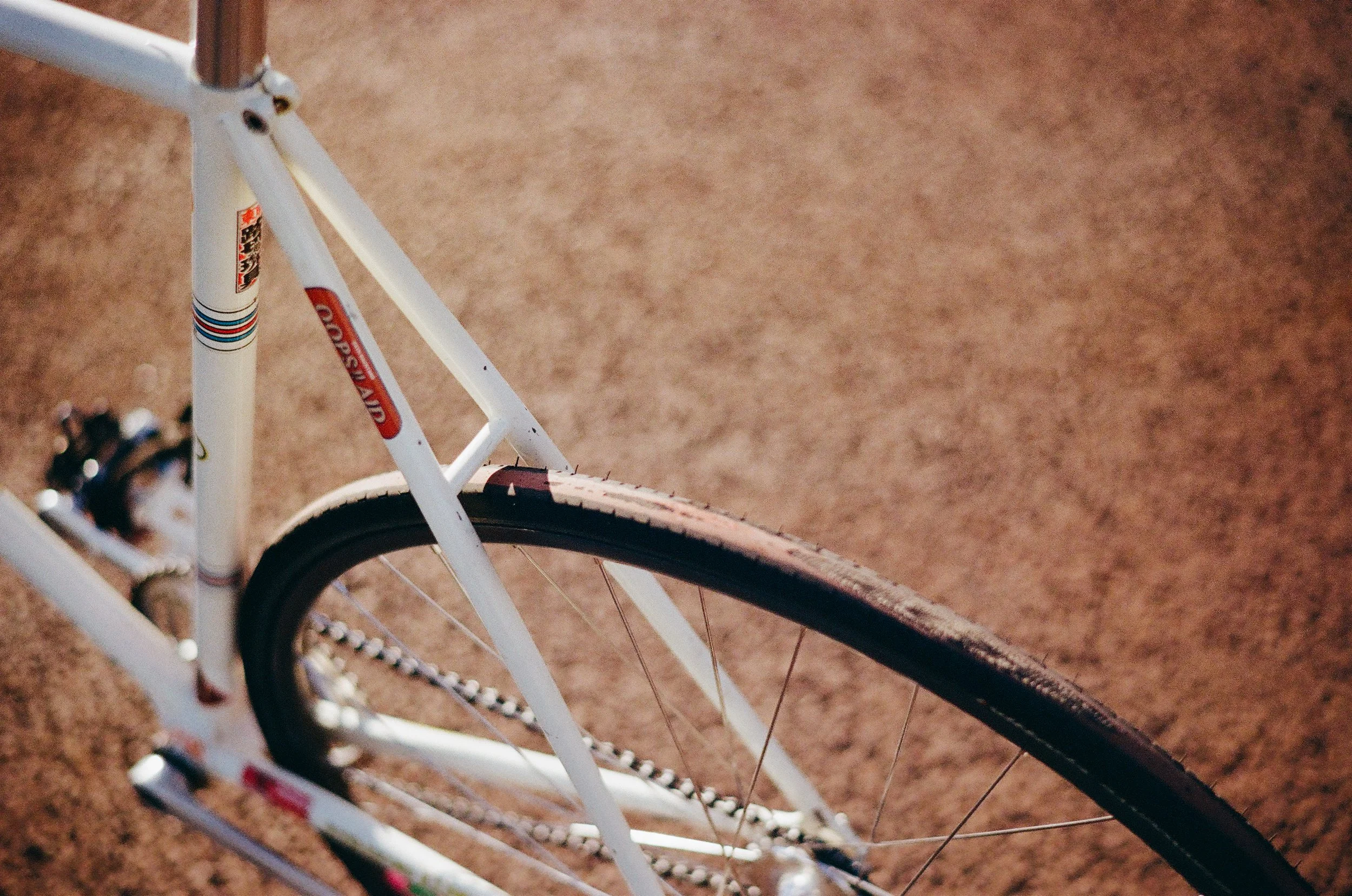 The rest of the bike is also a collection of classics, with, of course, a front Vittoria Corsa tire and a rear Randonneur, a Selle Italia Flite Transalp saddle, and an Italian–Japanese mixed drivetrain: Campagnolo cranks, a Mighty Competition chainring, and an Euro-Asia Imports cog.