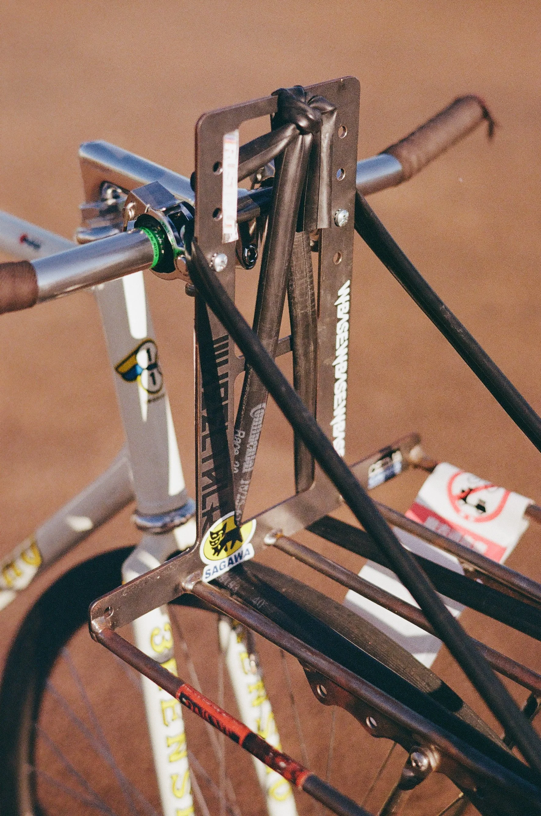 But back to the bike check. Starting with the obvious: this Cetma front rack, partially held in place with some convenient Minoura rack adapters, providing a quick-release system rather than the clunky original Cetma brackets. If you’ve ever owned one, you probably know exactly what I’m talking about.