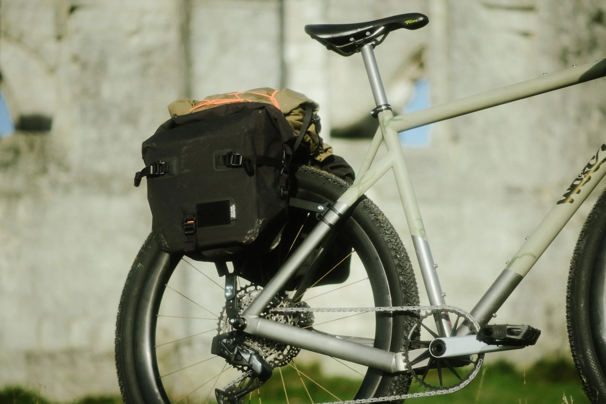 Mounting the Divide is one thing, but it becomes so much more useful when paired with the Ponderosa Panniers, which allowed me to carry what felt like more than I actually needed. These waterproof panniers can carry up to 13 L per bag, and thanks to their internal plates and compression straps, you can be confident that anything you put in them won’t shift while riding.