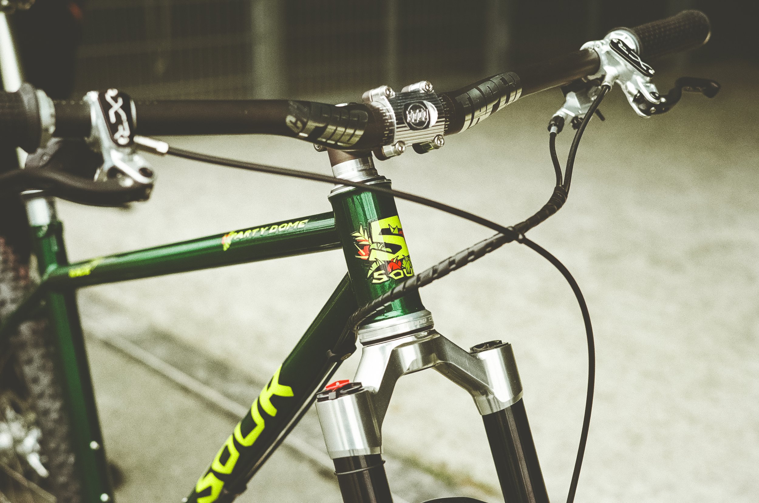 There are so many cool details on this bike, like the custom steel stem (also by Cybler Cycles) with a Paul Components front plate, the large amount of hope parts for brakes, and pretty much everything rotating. Or even the 420 frame number, because, “At Sour, every special project or prototype is either 420 or 69.”